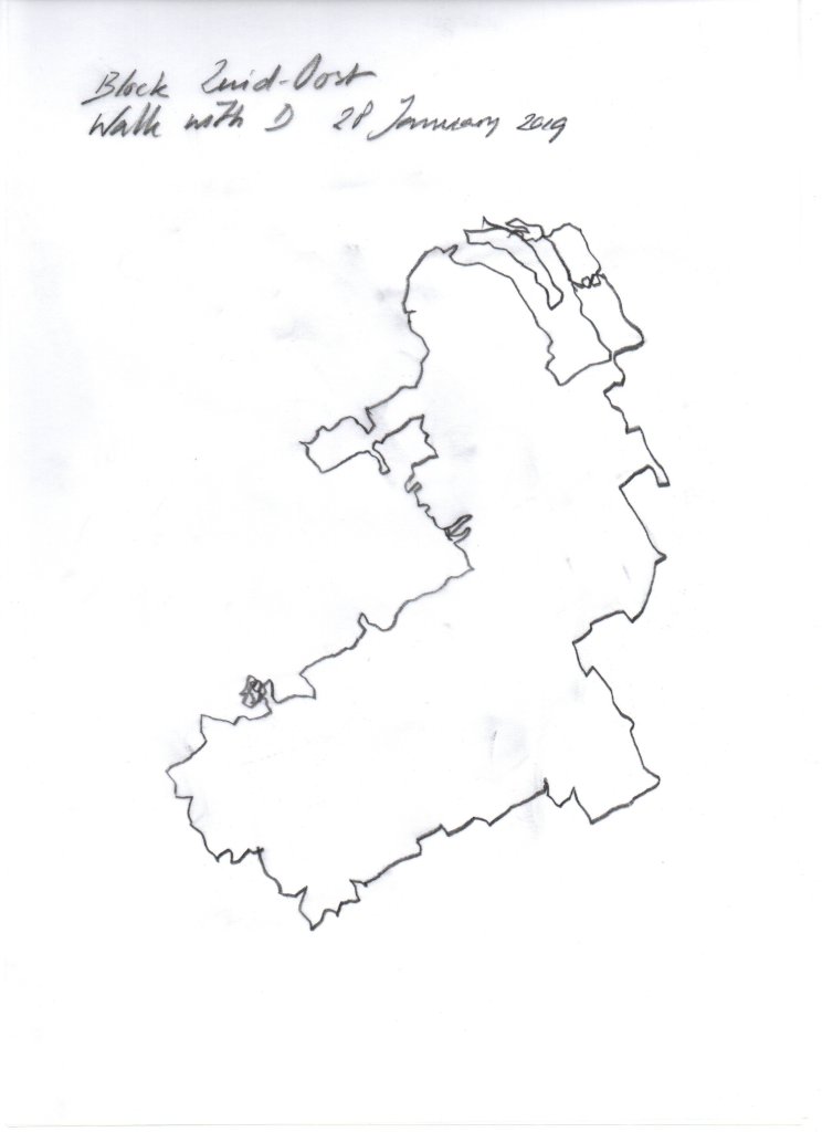 Sean MacBridestraat–Milovan Djilasplein–Florijn–Janusz Korczakplantsoen–Raphael Lemkinstraat–Claus van Amsbergstraat–Patricia Lumumbastraat–Milovan Djilasstraat–Janus Korczakstraat–Chico Mendesstraat–Raoul Wallenbergstraat–Andrej Sacharovstraat –Ken Saro-Wiwastraat–Martin Ennalsstraat–Raoul Wallenberghofje –Bijlmerdreef–Bijlmerplein–a little stroll inside a RABO bank branch–Bijlmerplein–Hoekenrodepad–Gulden Kruispad–Haardstee–Hoptille–Hofgeest–Gulden Kruispad–Bijlmerpleinpad–Hoogoord–Reigersbospad–Anton de Komplein–Suikerdiefjestraat–Troepiaalsingel–Pikoletstraat–Putterplantsoen–Janusz Korczakstraat–Florijn–Humberto Delgadoplein–Florijn